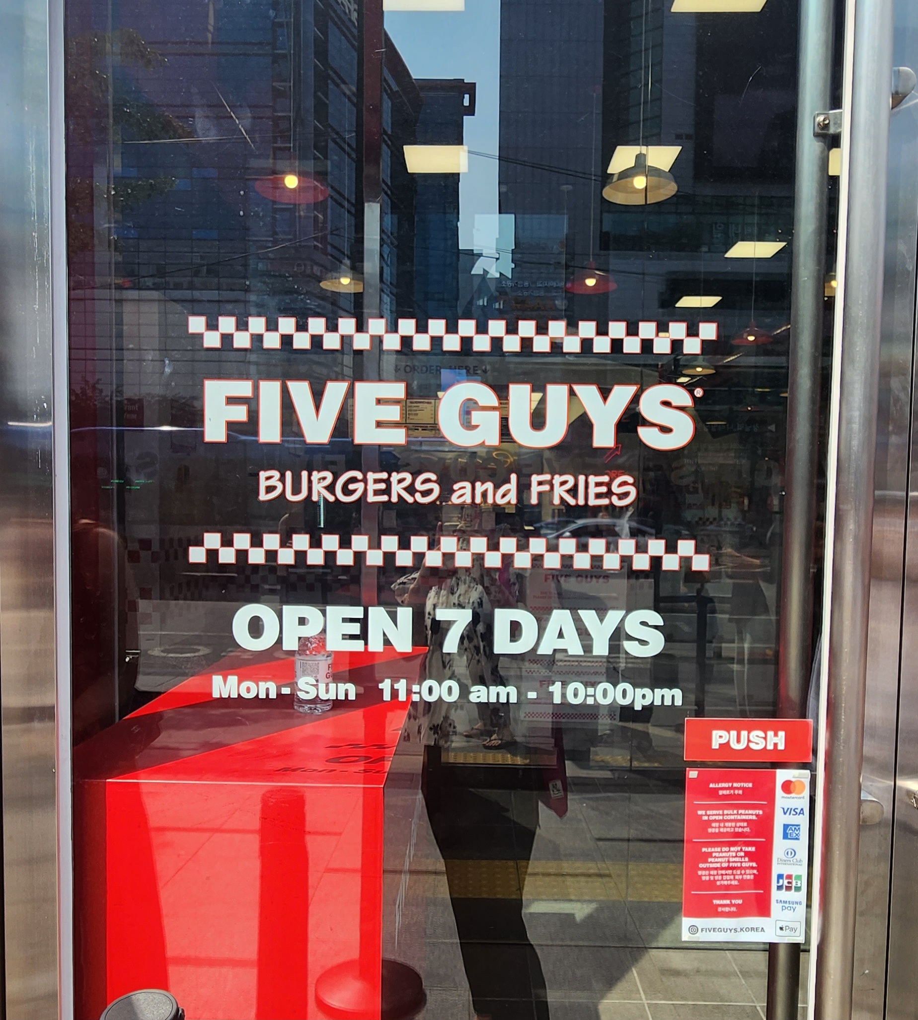 유명 유튜버와 맛집방송에서도 많이 나오는데 10시 전에 도착해서 대기번호를 작성하는데 455번이었다. 이후 2시경에도 아직 100번의 대기자가 있다. 어떤 블로거의 말대로 정말 5시간 기다려 먹는다는 게 사실이었다. 와... 강남에서 출퇴근하는 직장인에게는 가능할 듯하다. 아님 파이브가이즈를 가려면 오전에 대기번호를 작성하고 저녁을 먹는다 생각하고 다시 와야 할 듯하다. 얼마큼 유명한 맛인지 궁금하긴 하다.